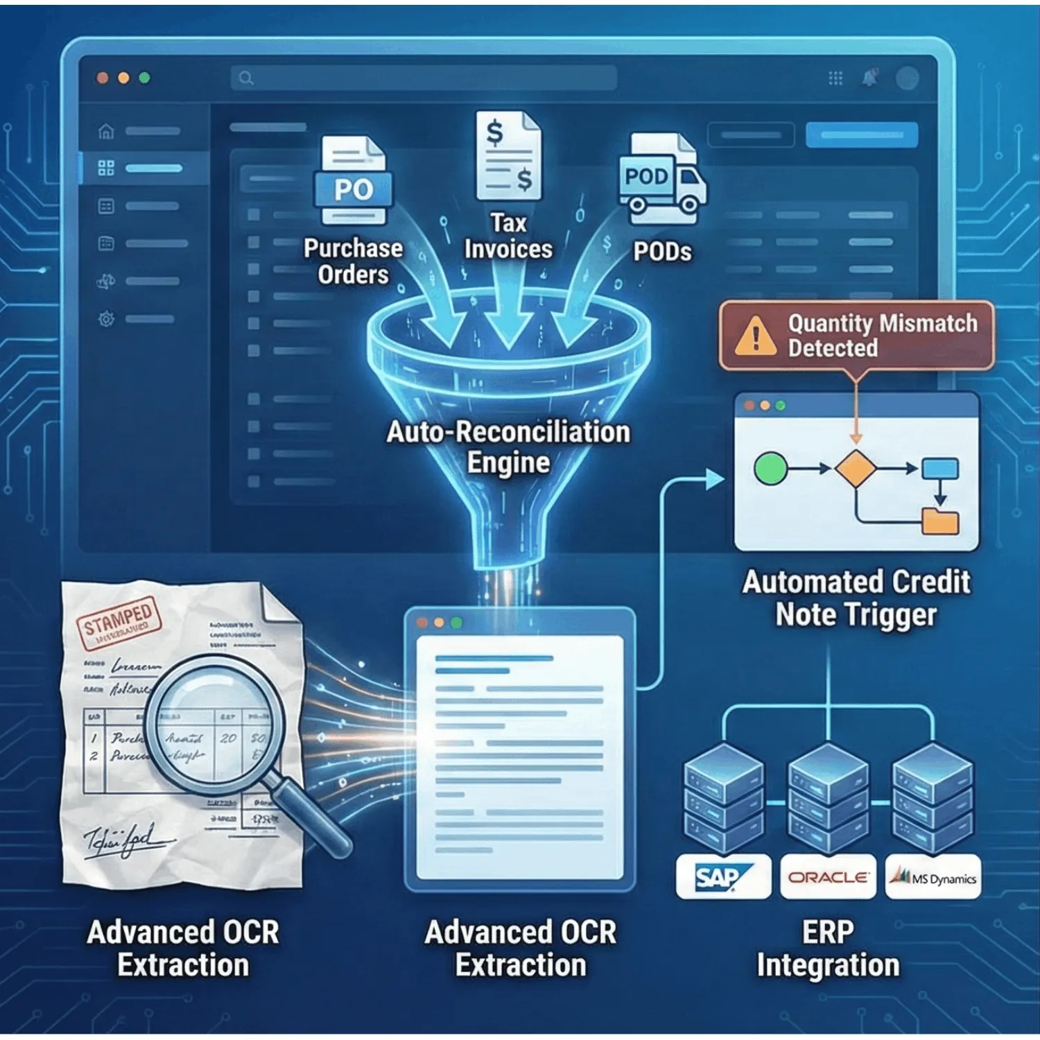 Detects quantity mismatches and triggers automated credit note workflows to prevent revenue leakage.